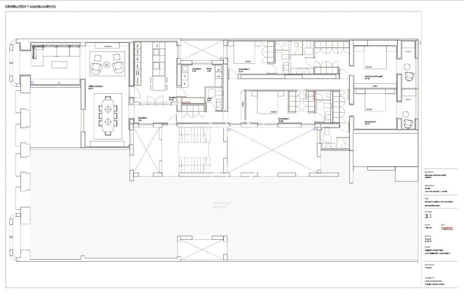 Con 326 m² construidos ( 277 m2 vivienda +8 m2 almacén +41 m2 de comunes) , la vivienda destaca por su luminosidad, gracias a sus cuatro orientaciones y su excelente altura de techos. Al entrar, un elegante hall de recepción da paso a un amplio salón-comedor, que abarca todo el ancho de la fachada y se abre a una espectacular terraza de 50 m² con orientación sur. Junto a este espacio se encuentra un TV room, proporcionando una zona de descanso adicional.
