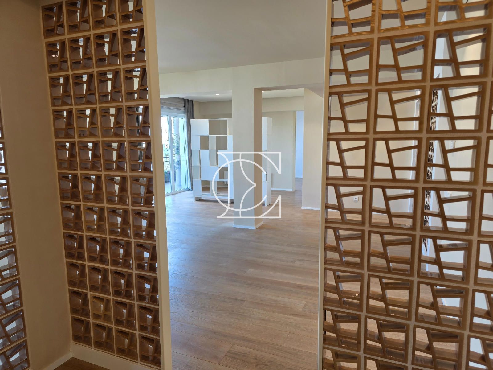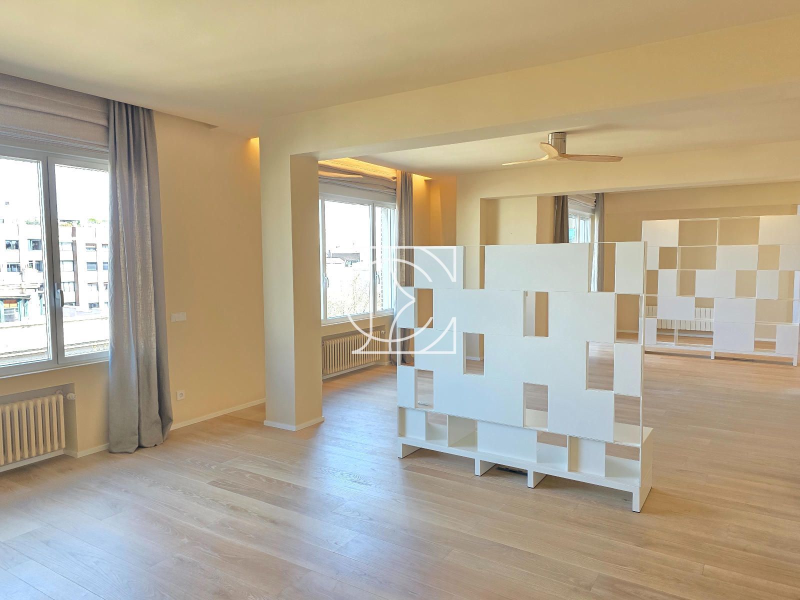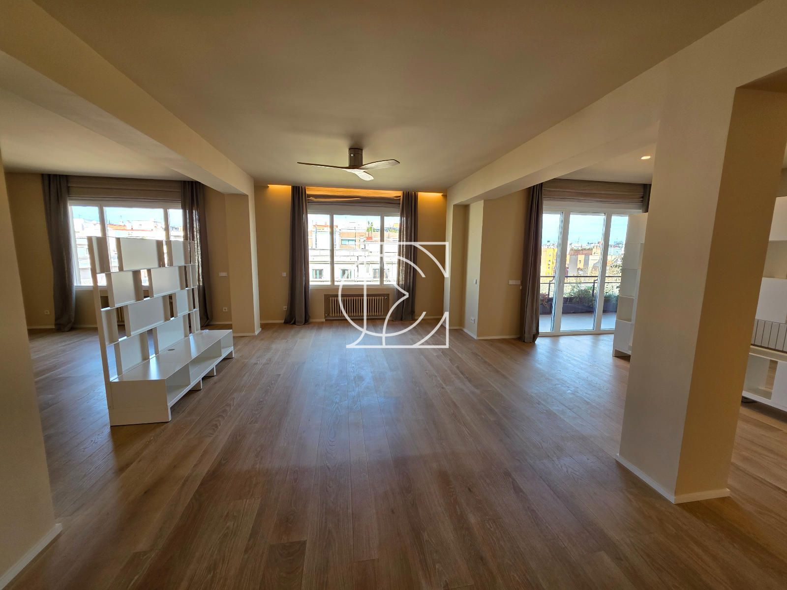 Desde el hall de entrada se accede a un gran salón en dos ambientes más comedor, todo exterior a Martínez Campos, con salida a una agradable terracita. La vivienda cuenta con armario gabanero, abundantes armarios a medida en toda la casa y aire acondicionado por conductos.