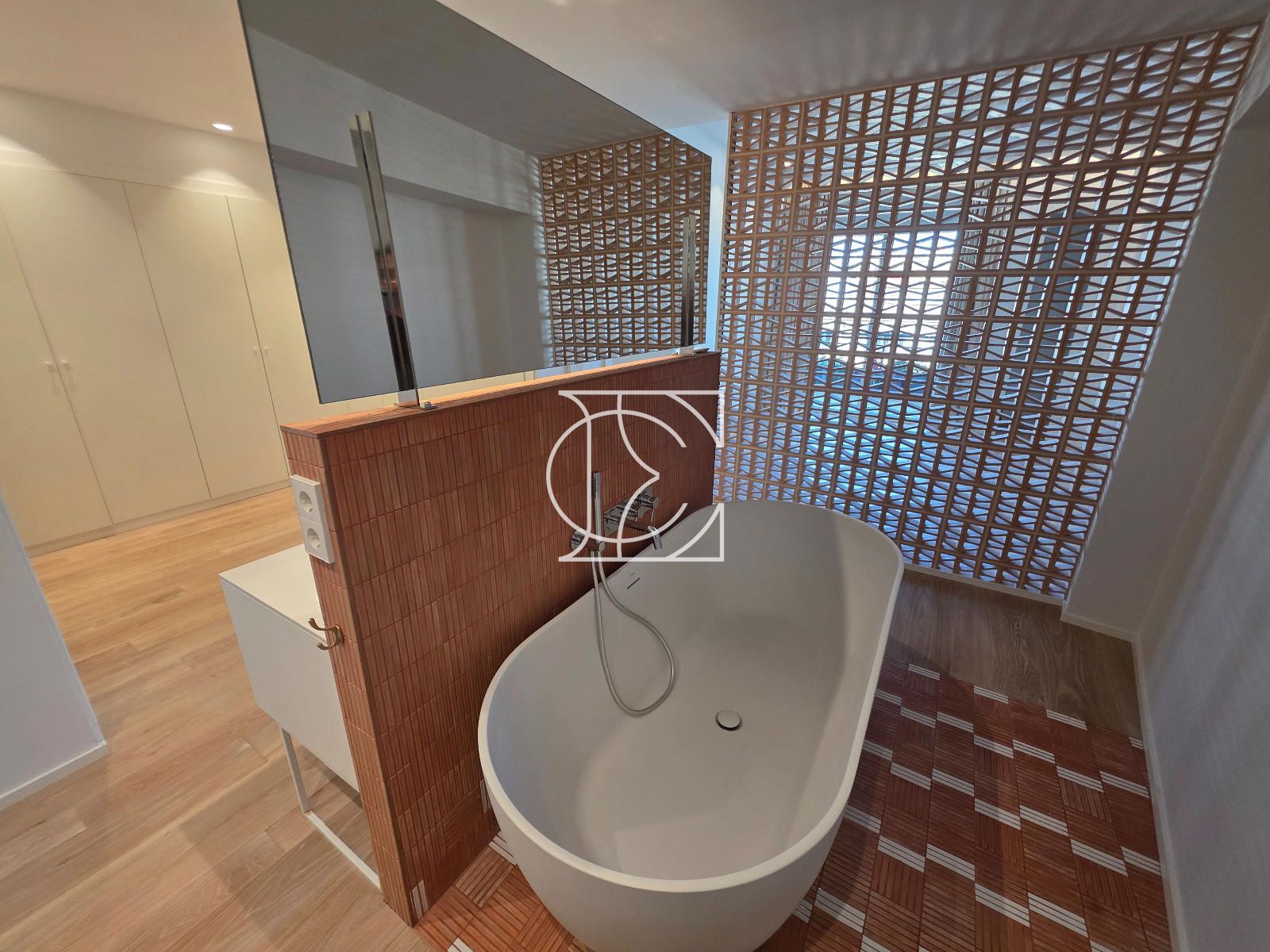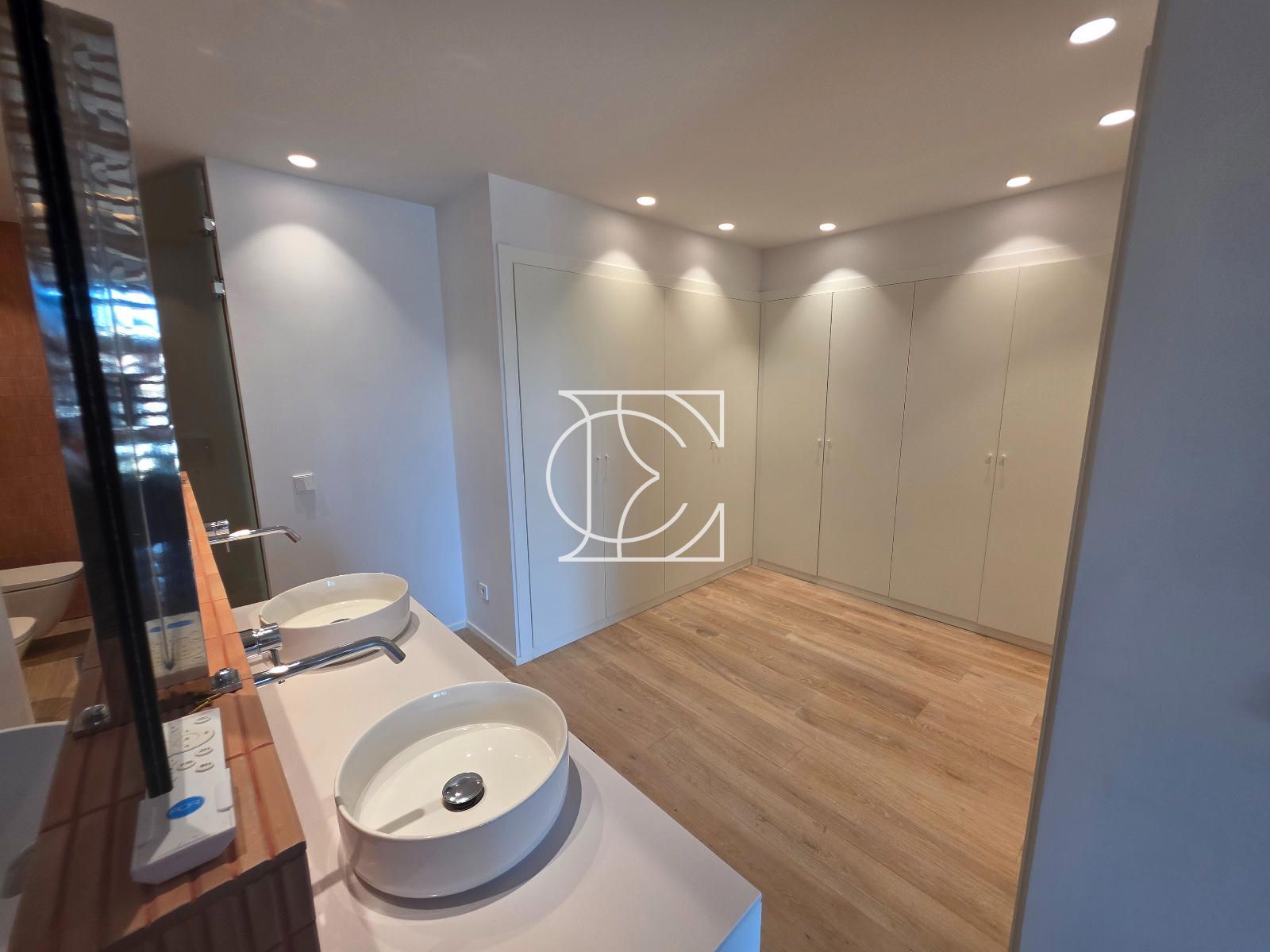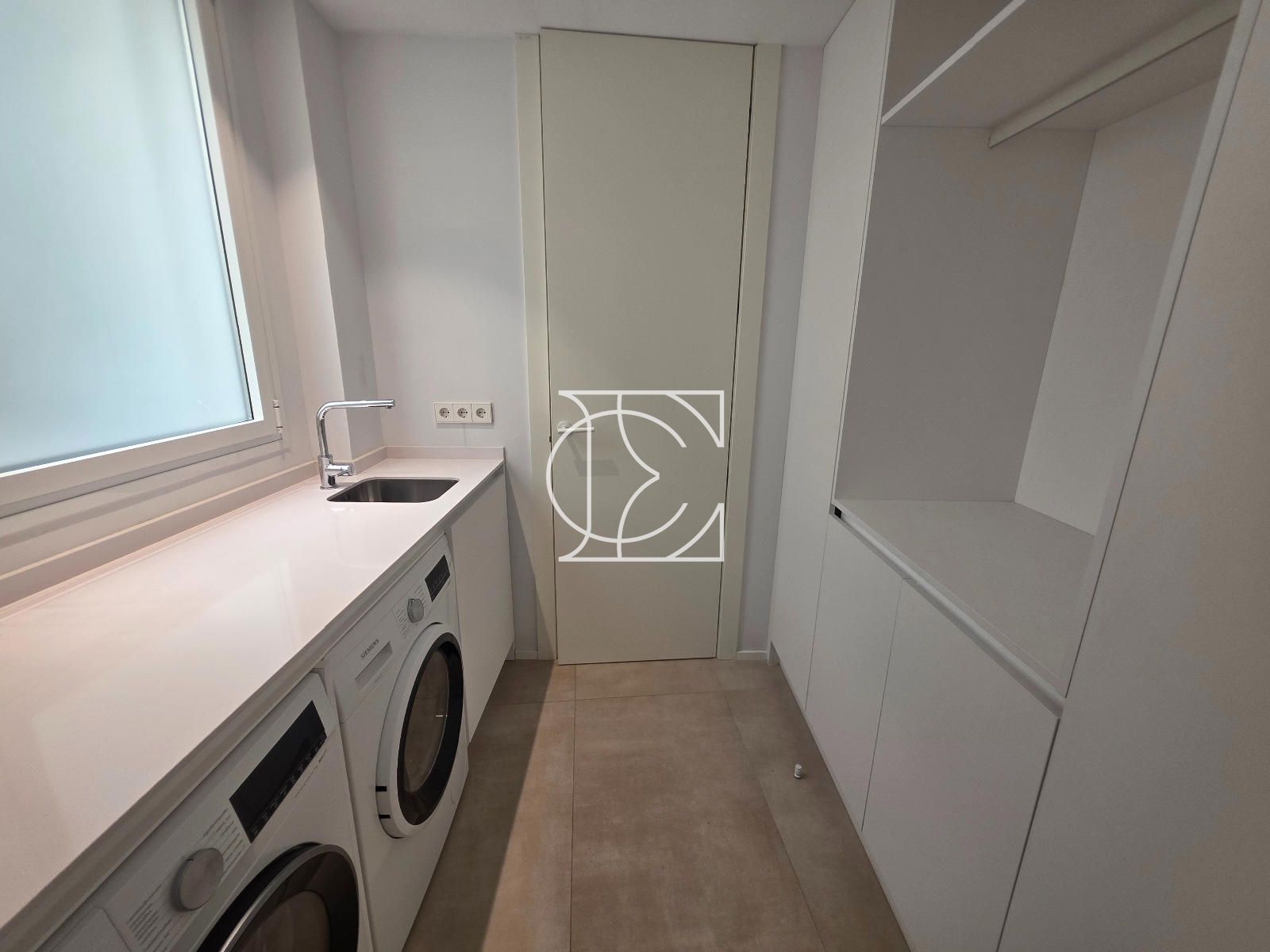 El dormitorio principal, también con salida a la terracita, dispone de baño en suite. Además, la vivienda ofrece dos dormitorios adicionales, cada uno con su baño en suite, aseo de visitas, cocina totalmente equipada, lavandería, dormitorio y baño de servicio, así como puerta y ascensor de servicio.