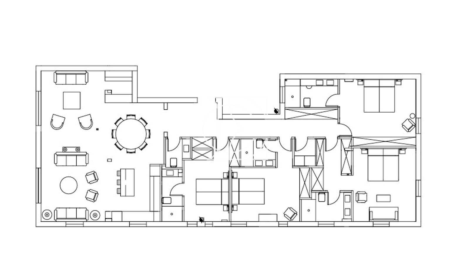 La zona de descanso se compone de cuatro amplios dormitorios con baño en suite, garantizando privacidad, amplitud y comodidad para propietarios y huéspedes. La orientación norte proporciona una luminosidad constante, suave y elegante, especialmente valorada en interiores sofisticados con acabados premium.