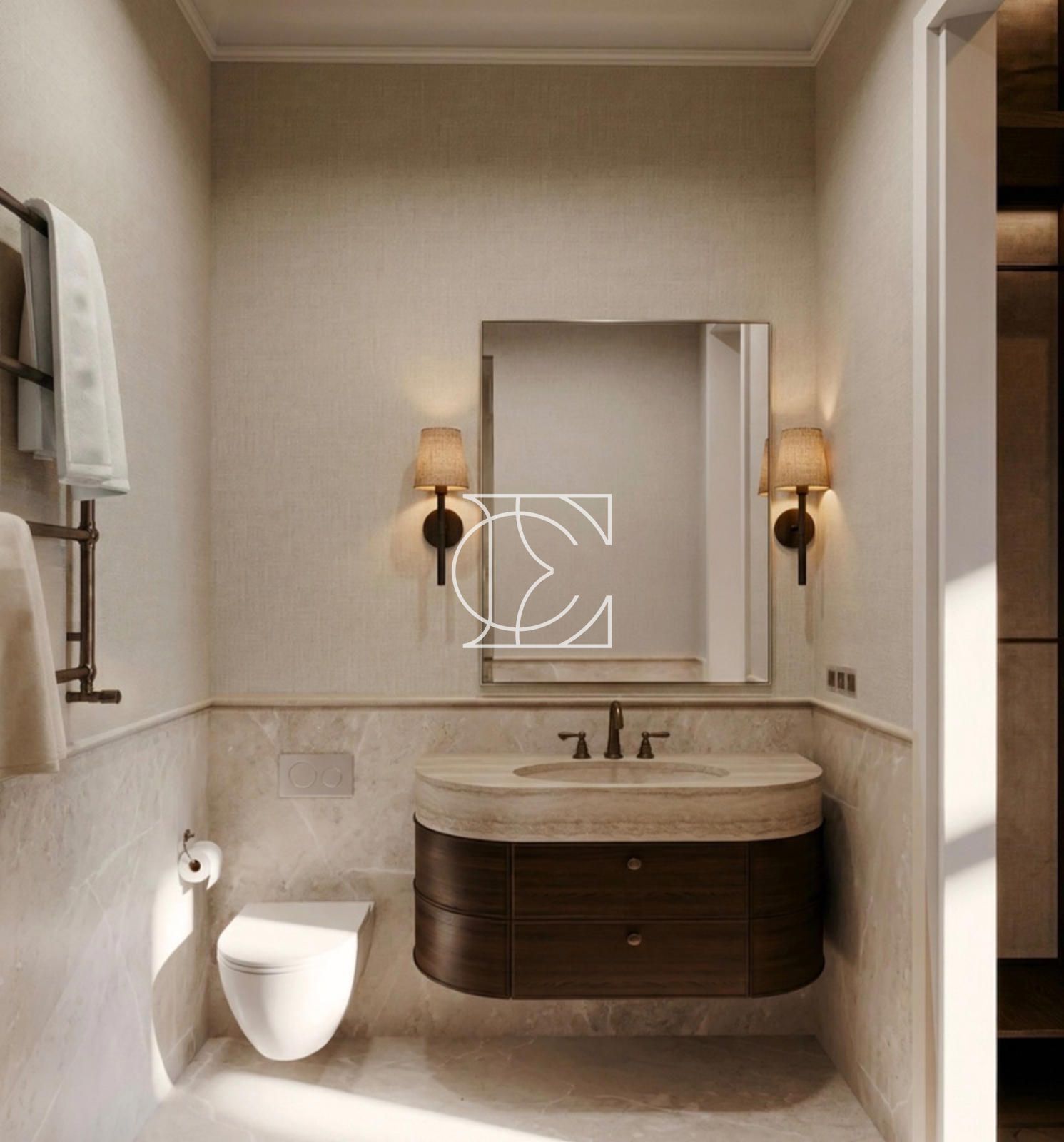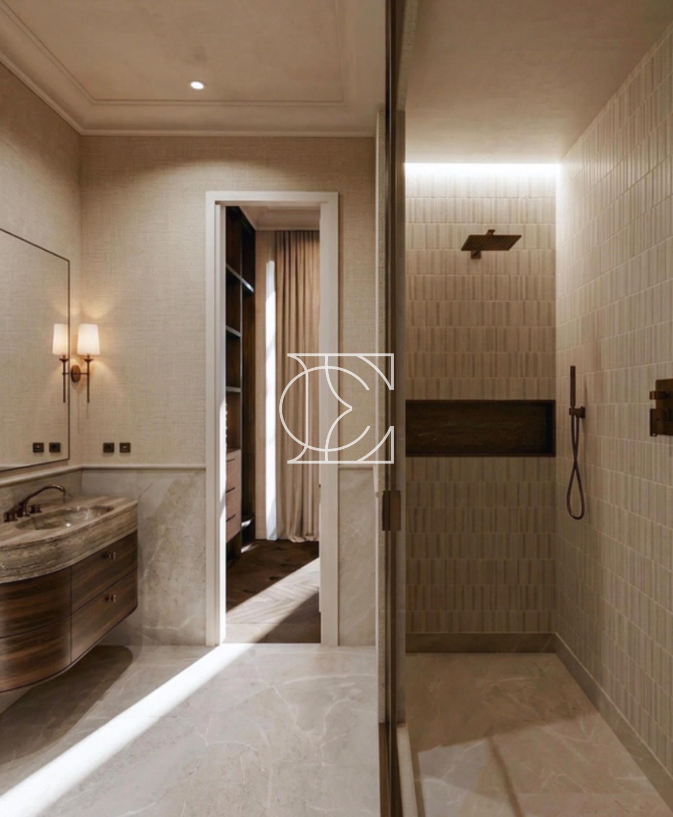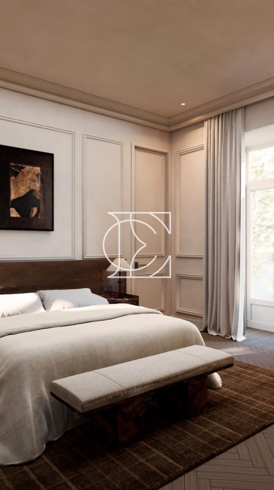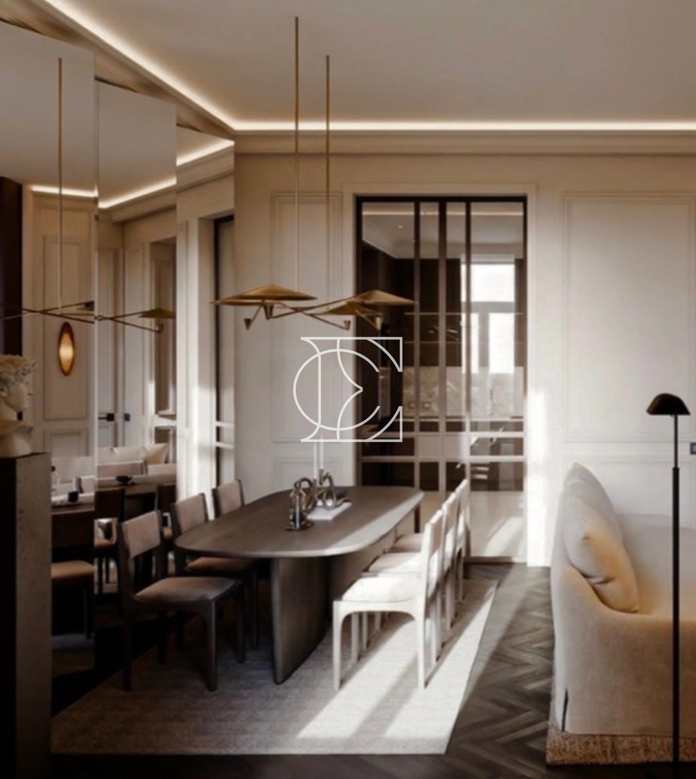 El inmueble ha sido completamente reformado, combinando arquitectura clásica con diseño contemporáneo. Conserva elementos originales como techos de 3,5 metros de altura y molduras decorativas, integrados con materiales de alta calidad como madera natural y piedra en cocina y baños.