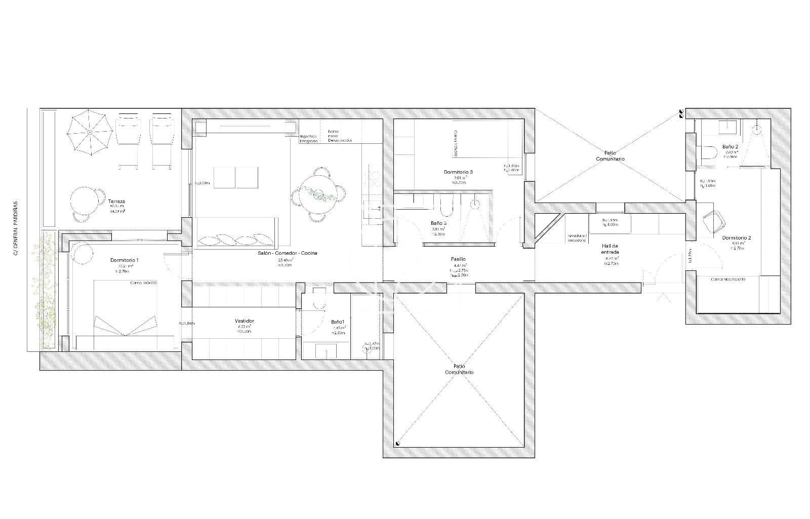 Superficie: 139m2 en catastro (98m2 de vivienda + 17m2 de terraza + 14m2 comunes)